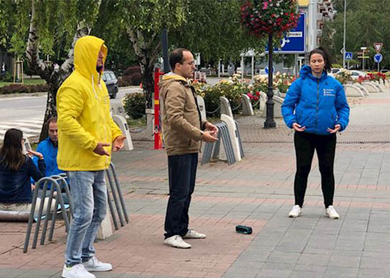 六月二十日,斯洛伐克法轮功学员在西部城市嘎朗塔市中心广场附近举办活动,向当地民众介绍功法,并揭露中共迫害。