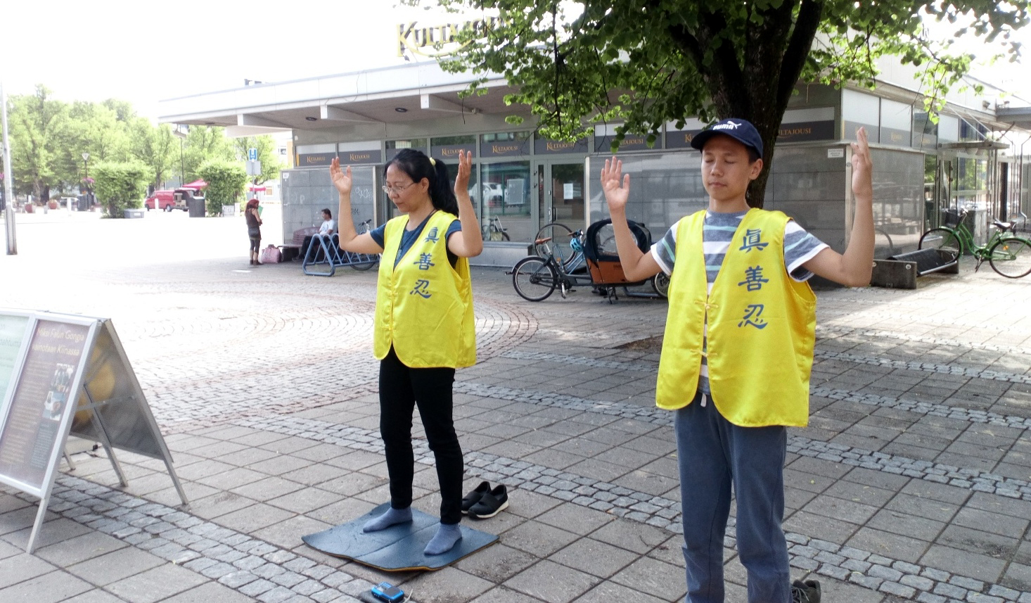 ![]() 图1:法轮功学员在波尔沃市隆迪商场外面炼功 |