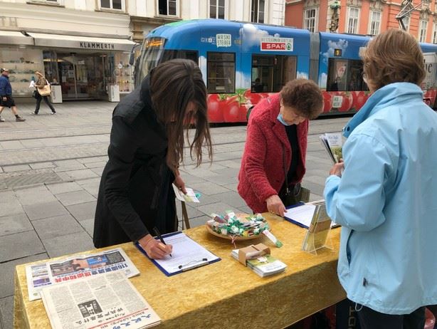 【明慧网二零二零年六月四日】二零二零年五月三十日,在欧洲圣灵降临节日期间,法轮功学员在奥地利施蒂利亞州(Styria)州府格拉茨(City of Graz)和下奥州州府圣帕尔滕(Sankt Pölten)分别举行了讲真相活动。