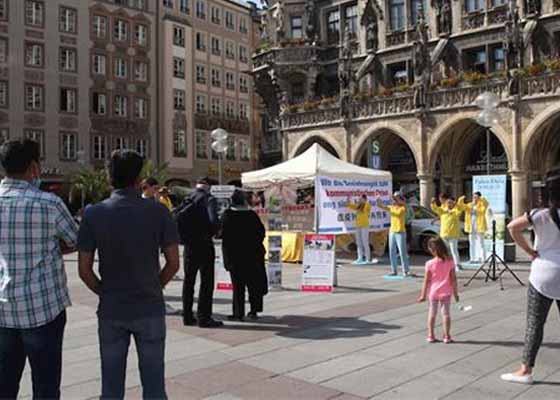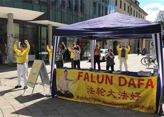 - 大陆留学生:原来被洗脑的是我呀(图)- 慕尼黑法轮功学员举办信息日活动,向民众介绍功法,揭露中共对法轮功长达二十多年的迫害,呼吁不要为了经济利益迎合中共,忽略了道德。