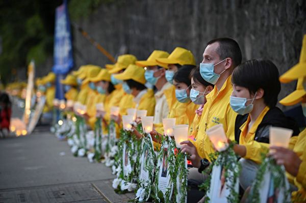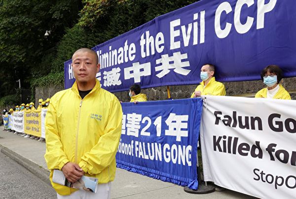 【明慧网二零二零年七月十四日】在法轮功反迫害21周年之际,来自大温哥华地区的部份法轮功(又称法轮大法)学员于2020年7月10日傍晚,在加拿大温哥华中领馆前举办集会和烛光夜悼活动,以“真相长城”揭露中共残酷打压真相,悼念被其迫害致死的法轮功学员。