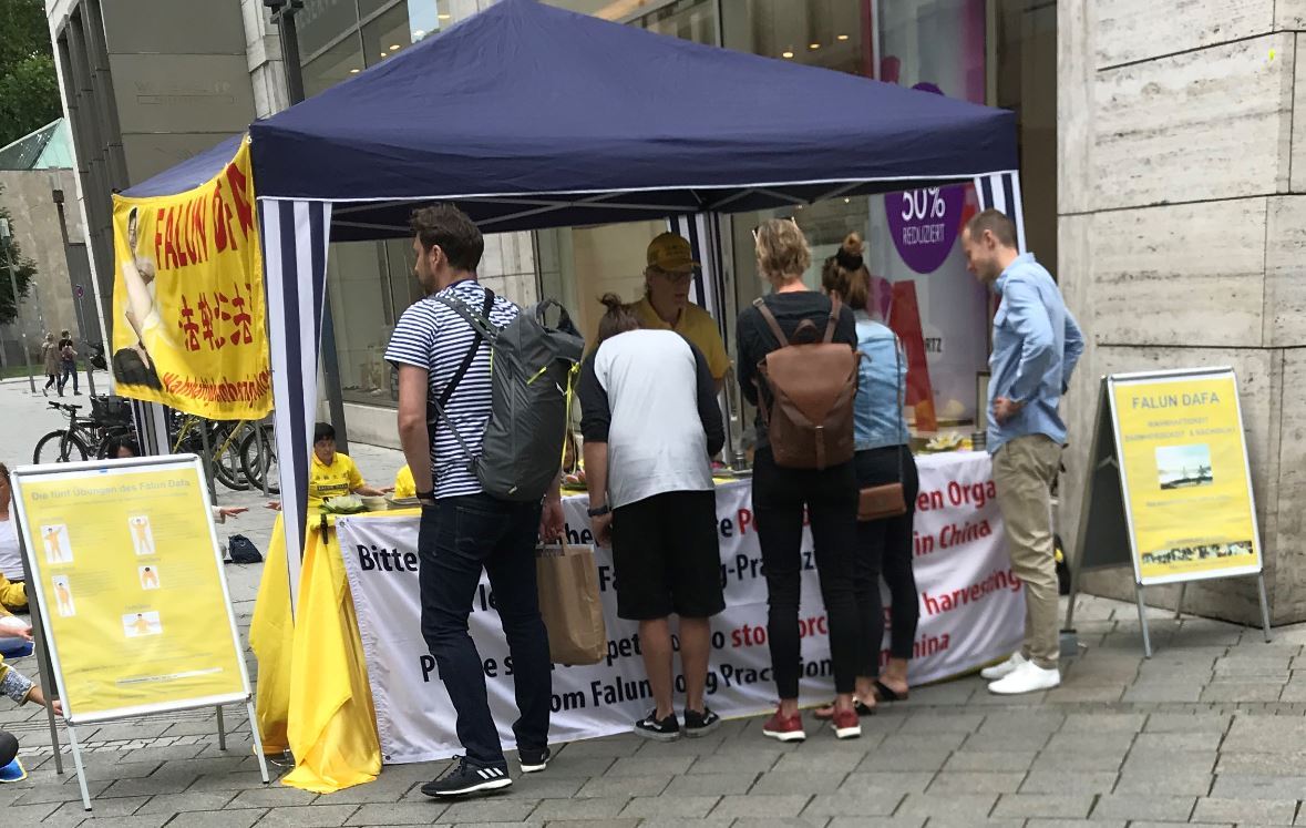 【明慧网二零二零年七月十六日】二零二零年七月十一日,德国斯图加特(Stuttgart)热闹的国王大道(Königstraße)上,熙来攘往的人群中一群穿着黄色上衣专注炼功的人格外引人注目,伴随着优美的音乐,他们正在向人们展示法轮功的五套功法,他们是来自斯图加特及周边城市的法轮功学员。
