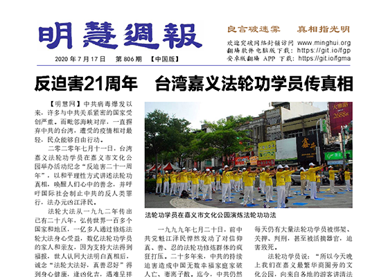 反迫害21周年 台湾嘉义法轮功学员传真相