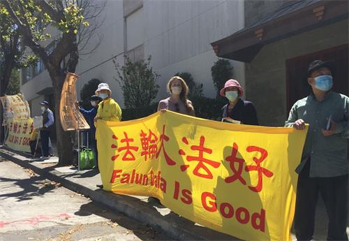 【明慧网二零二零年七月十八日】(明慧旧金山记者站报道)“坚韧不屈反迫害,和平理性唤良知”。二零二零年七月十七日,在法轮功反迫害二十一周年之际,旧金山部份法轮功学员来到中共驻旧金山领事馆前和平请愿,呼吁世人了解真相、远离中共、法办江泽民、制止迫害。