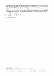 斑驳格尔还在信中回忆起德国纳粹时期对犹太人的迫害。他写道:“在第三帝国时期,对犹太人的迫害在大屠杀中达到丑恶、令人发指和反人类的高峰”。在那之后,诞生了人权宣言,包括宗教自由的权利。“作为黑森州直选的议员,我支持每个人都可以向压迫和暴政说不,能自由规划自己的人生。”“我会尽我一切所能保护法轮功运动。对于那些参与迫害法轮功运动的人,我表示强烈抗议”。