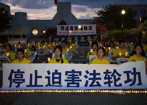 反迫害21年 华府学员中使馆前烛光守夜(图)