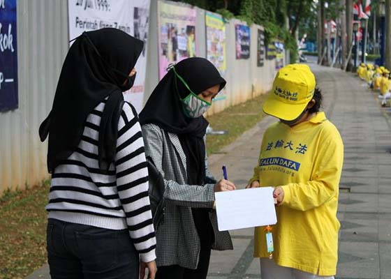 印尼雅加达法轮功学员在中国大使馆前和平抗议(图)