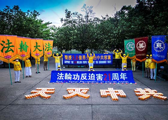 二零二零年七月十六和十七日,纽约法轮功学员有的在公园炼功、有的举办烛光悼念,纪念反迫害二十一周年。