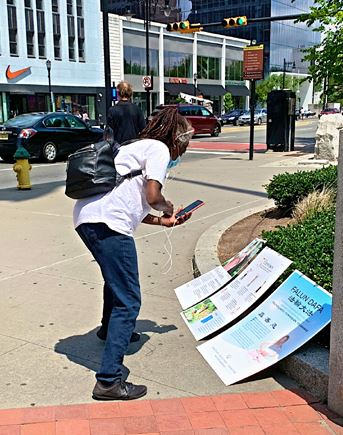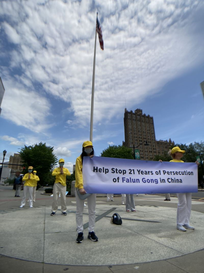【明慧网二零二零年七月十九日】二零二零年七月十六日,天气晴朗,清风阵阵,是七月少有的凉爽宜人的天气。美国新泽西州部份法轮功学员来到纽瓦克市(Newark)市中心,以集体炼功、真相展板、播放真相录音形式向民众展示法轮大法的祥和美好,揭露中共迫害法轮功的残酷手段,呼吁停止在中国已经持续了二十一年的对法轮功的迫害。