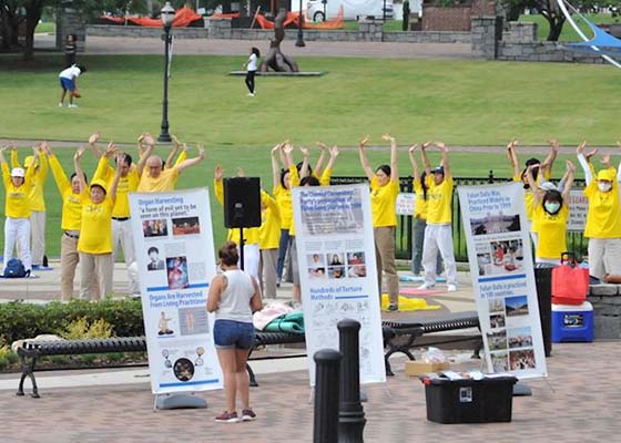 七月十八日,美国大费城地区部份法轮功学员数十人,在美国国家独立历史公园的费城自由钟广场和中国城举办活动,纪念法轮功学员反迫害二十一周年。