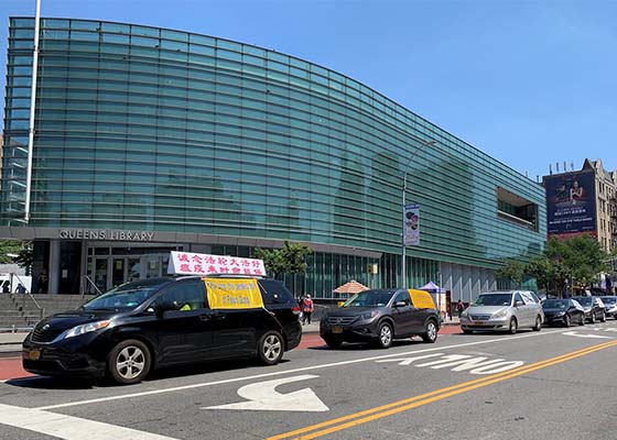 七月十八、十九日周末两天,纽约法轮功学员组成“真相车队”环绕三大华人社区和中领馆,告诉世人“中共是最邪恶病毒,祸害全世界”、“拒绝中共,远离瘟疫”,沿途所到之处,吸引不少路人拍照,并向车队竖起大拇指表示赞许。