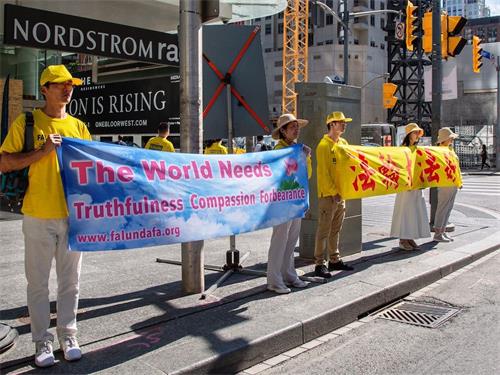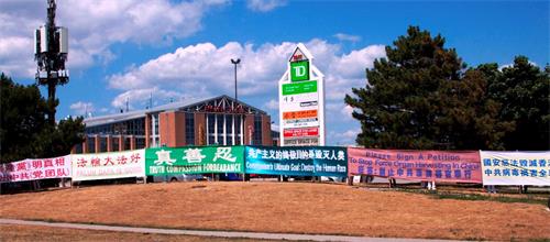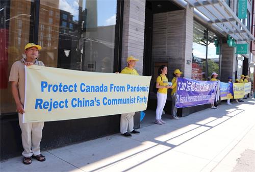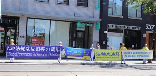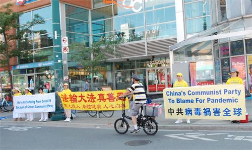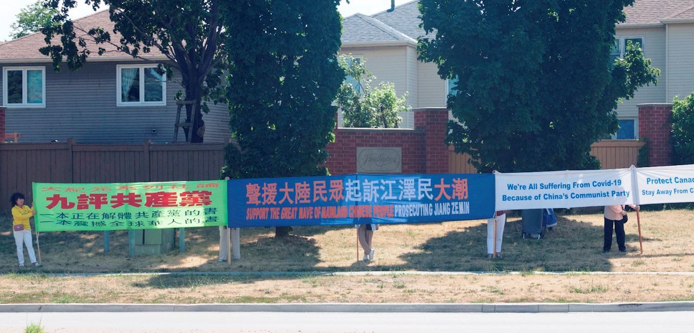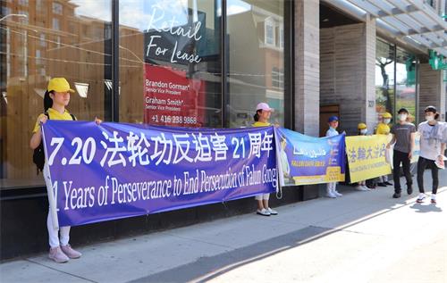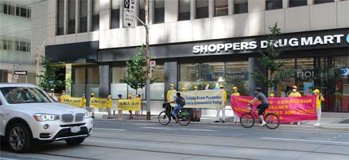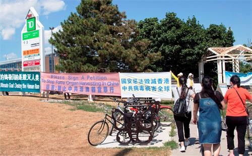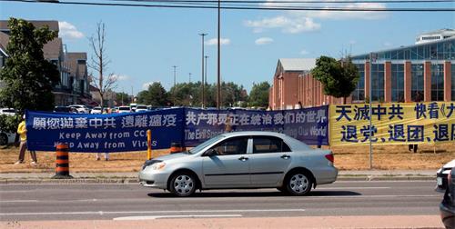 【明慧网二零二零年七月二十日】(明慧加拿大多伦多记者站报道)二零二零年七月十七日下午,大多伦多地区的法轮功学员在市中心、密西沙加市、士嘉堡区和万锦区繁忙的四十多个路口拉起真相横幅,组成真相长城,给民众传递真相,呼吁民众以及加拿大政府关注这场发生在中国、持续了二十一年的对法轮功的残酷迫害。