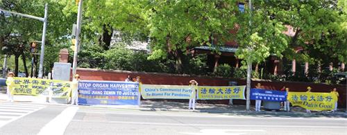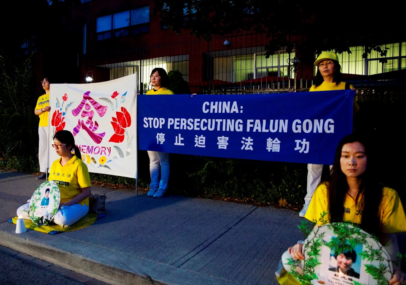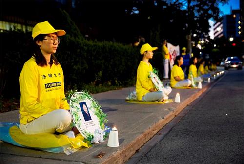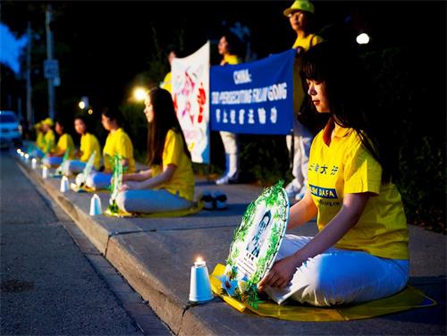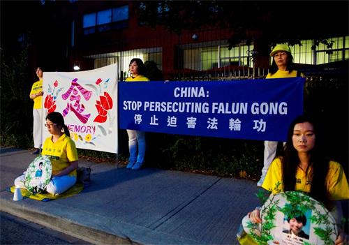 '图25~28:晚上8点至10点,法轮功学员在多伦多中领馆前举行了烛光悼念,悼念在中国被中共迫害致死的法轮功学员。'