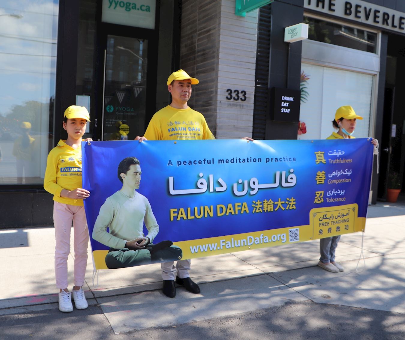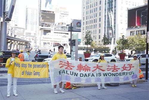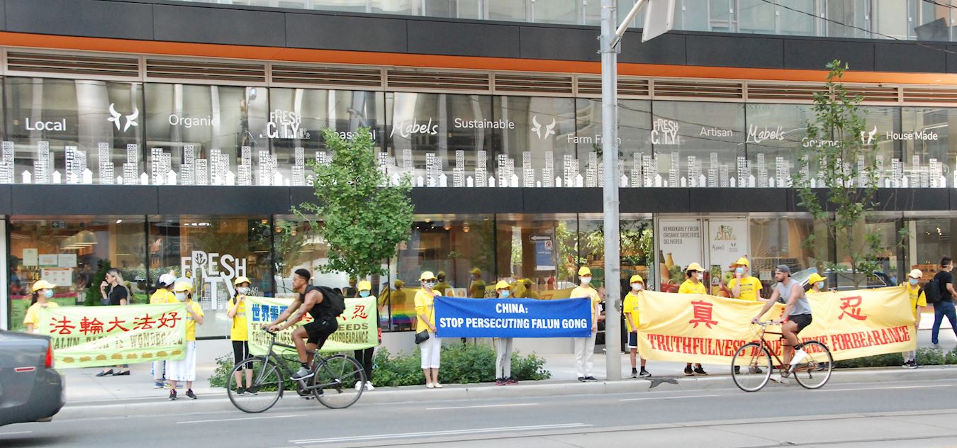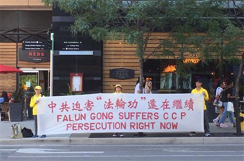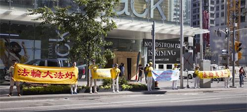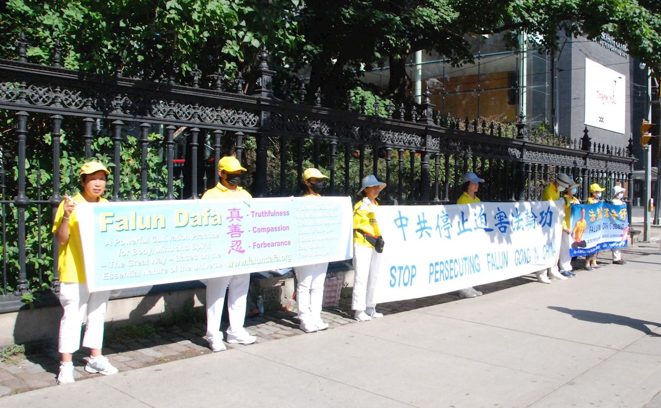 吴先生是一位很早就移民加拿大的香港人,他走到拉着大法真相横幅的学员跟前说:“我一直在看大纪元的报纸,法轮功被迫害的情况我都知道。据我知道,在中共内部,其实很多高官和他们的家属在江泽民迫害法轮功之前,他们都是修炼法轮功的。我很久之前就已经知道法轮功了,在加拿大,也参加过法轮功学员的一些集会,以及游行活动。有一次大法弟子在多伦多大学放电影我也去看了。”
