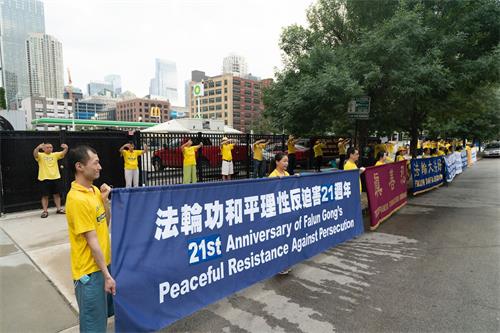 【明慧网二零二零年七月二十日】2020年7月18日,美国大芝加哥地区部份法轮功学员来到芝加哥市中心的中领馆前,悼念被中共迫害致死的中国大陆同修,揭露中共21年来对法轮功的残酷迫害,让广大民众了解真相,认清中共的邪恶本质,共同制止中共对中国大陆法轮功学员的迫害,以致对全世界人民的毒害。