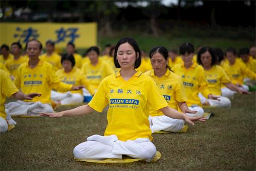 十九日傍晚四时许,习习凉风吹拂活动现场,一扫酷热高温的天气,草坪上集体炼功的场面祥和宁静,吸引许多前来休憩的民众驻足。很多人因此而了解法轮功真相,除了表达支持,也签署举报迫害元凶江泽民的连署书;有的透过学员说明,态度幡然改变:由误解法轮功在搞政治,到主动想学炼法轮功;更有民众希望共产党早日下台,让世界和平早日到来。