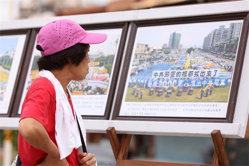 周先生驻足于真相图片展板前,这是他第一次听到法轮功真相。随后谈到目前的疫情、大陆洪灾肆虐,还有全球动荡的现况,都和共产党相关,这让他对共产极权政府的所作所为,非常的无法理解和感叹。