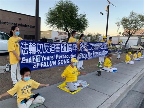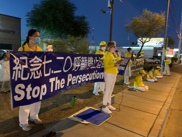 ![]() 图1~2:二零二零年七月十七日晚,美国拉斯维加斯的部份法轮功学员汇集春山路,在中国城的對面,举办纪念7.20反迫害二十一周年活动 |