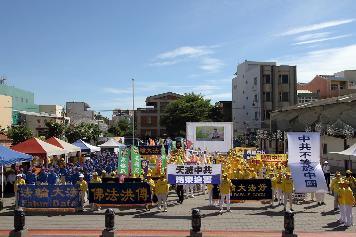 多位彰化地区的民意代表、政要及士绅到现场参与活动,表达对法轮功学员的敬佩及声援,也呼吁乡亲认清中共真面目,揭露中共的暴行,早日停止迫害。游行队伍以天国乐团开道,沿途民众、游客驻足观看并拍照,很多观众竖起大拇指称赞,也有民众举起手上的莲花,开心的说收到学员送来的祝福。更有民众跟着游行队伍绕了一圈,表示想要进一步了解如何学炼法轮功。