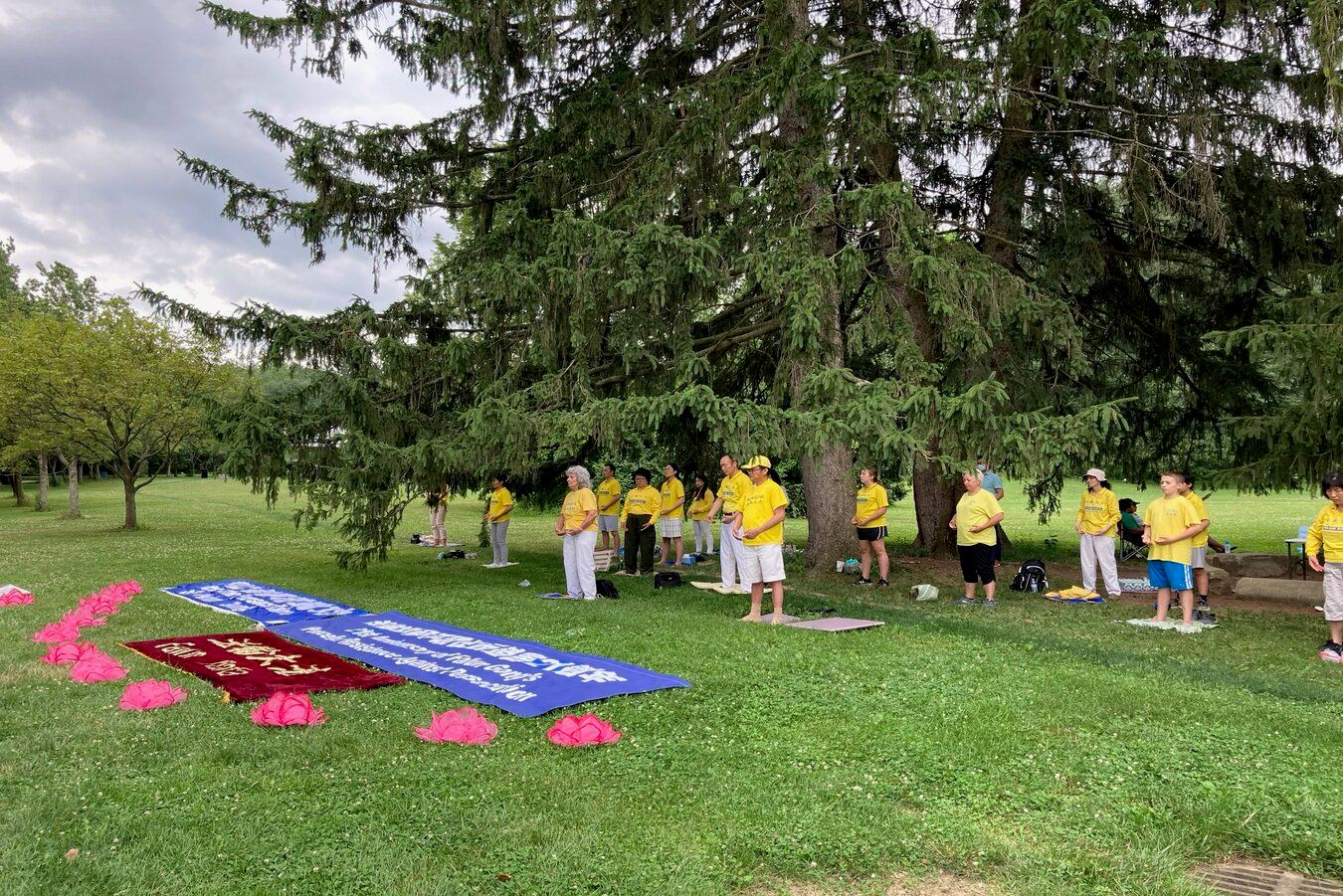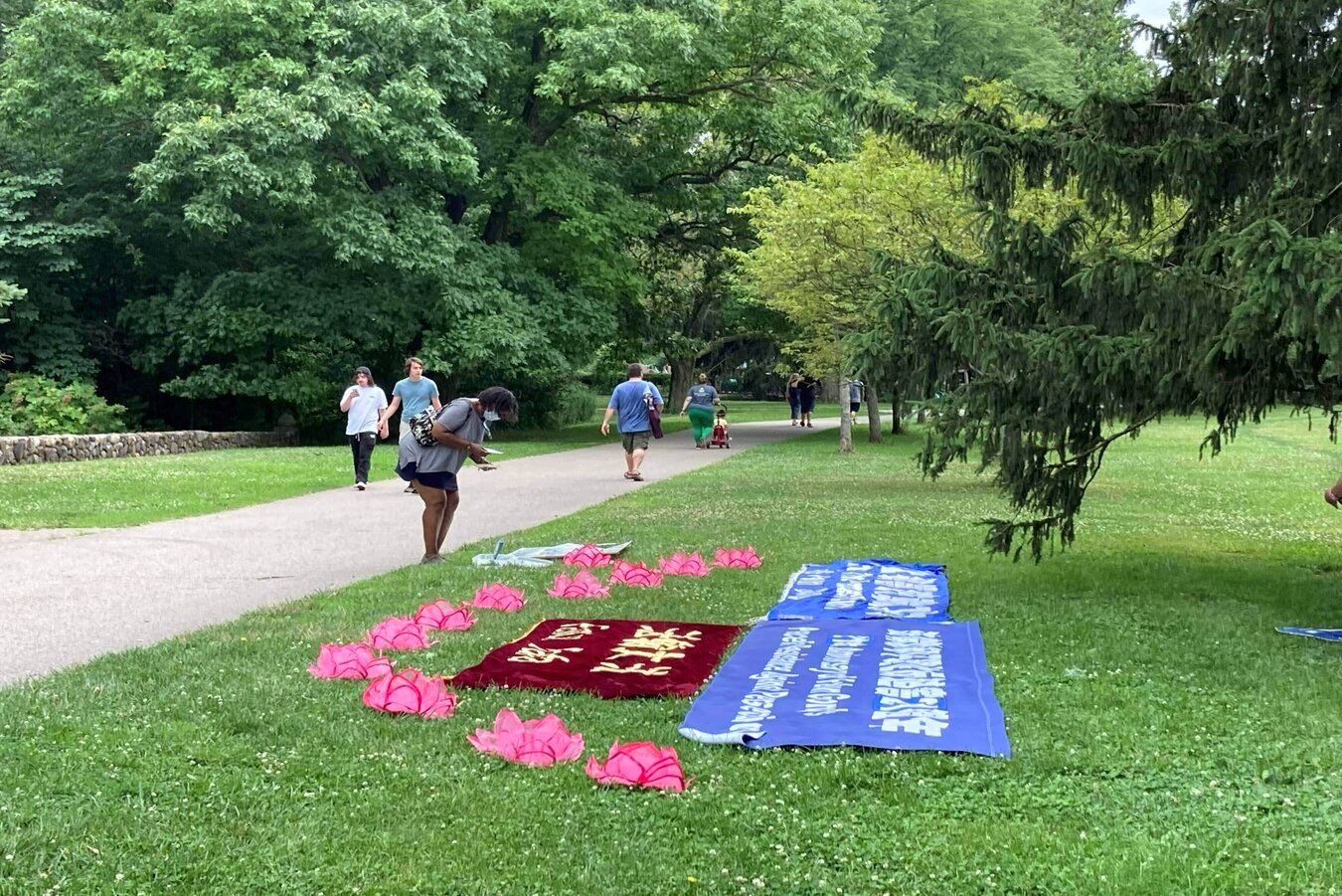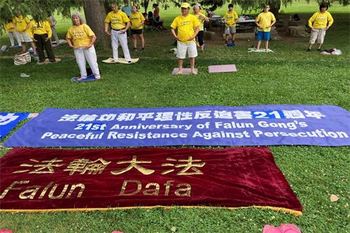 【明慧网二零二零年七月二十一日】二零二零年七月十九日星期天,部份美国印第安纳州法轮功学员来到霍利迪公园(Holiday Park)举行纪念法轮功和平理性反迫害二十一周年的活动。学员们以集体炼功,派发真相资料的形式向民众展示法轮大法的祥和美好,同时展开横幅呼吁停止在中国已持续二十一年的对法轮功的迫害。希望民众了解真相,共同制止迫害。