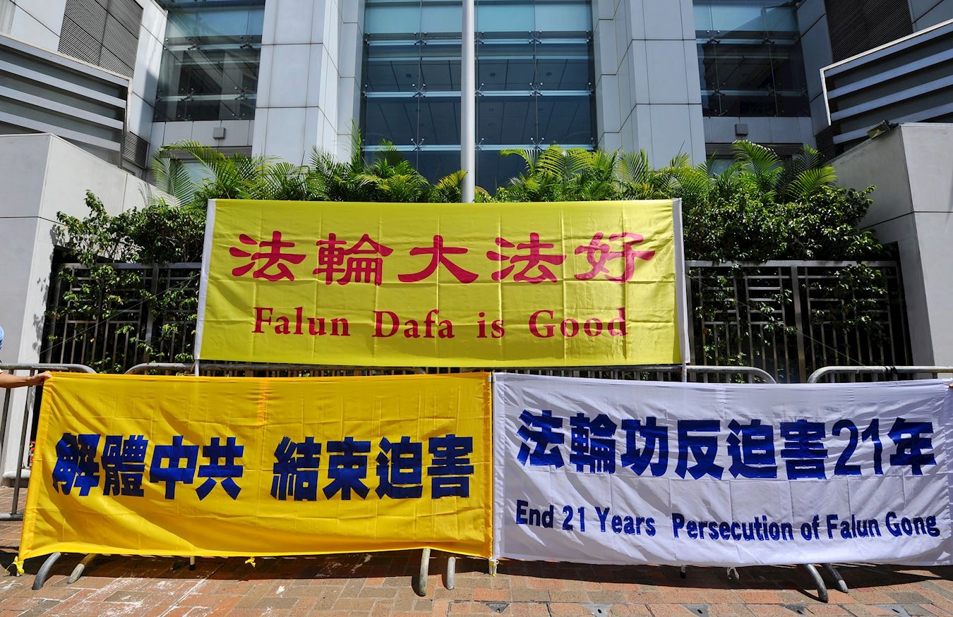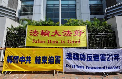 【明慧网二零二零年七月二十一日】适逢“七二零”法轮功学员反迫害二十一年,即使受到中共“港版国安法”压力,二零二零年七月十九日,香港法轮功学员一如既往到中联办前抗议,呼吁解体中共、结束迫害。包括民主党主席胡志伟、公民党党魁杨岳桥等多位泛民主派议员,皆对法轮功学员长期坚持抗暴表示钦佩,赞扬是为香港民众抵抗暴政做出典范。