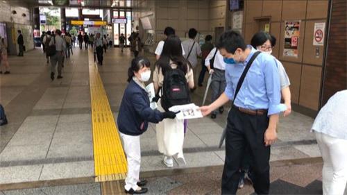 在日本的各个车站,学员们摆出真相看板,派发真相资料,呼吁各界联结正义力量一起结束这场迫害。
