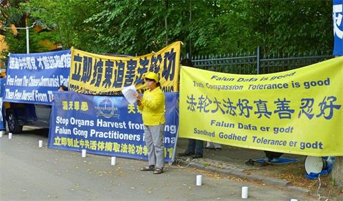 七月二十日上午,部份丹麦法轮功学员来到中共驻丹麦大使馆前,向使馆各层官员讲真相,呼吁他们在全世界与全中国人民唾弃中共邪恶政权的历史时刻,审时度势,当机立断,尽快与中共邪党决裂,退出其党、团、队组织,为自己和家人获得平安。