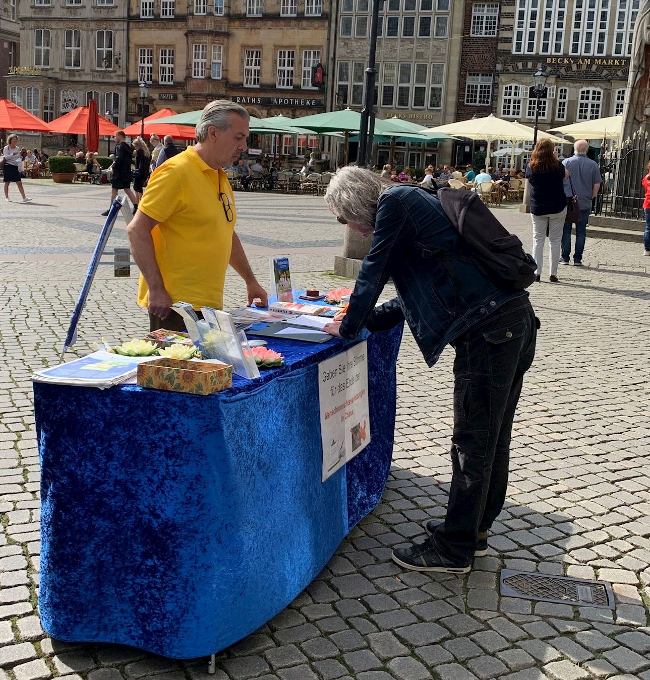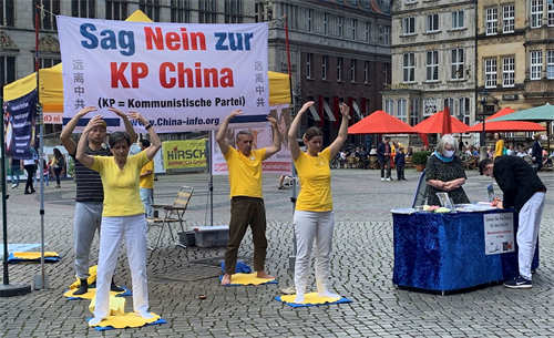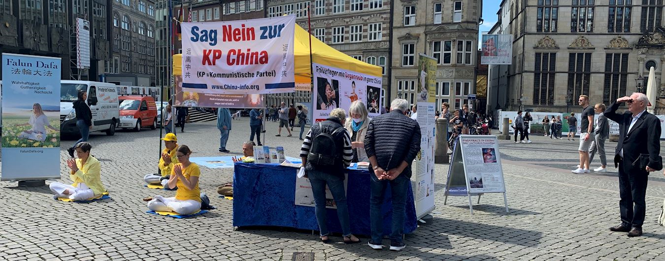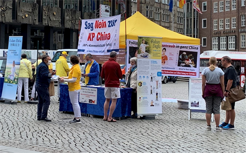 【明慧网二零二零年七月二十三日】二零二零年七月二十日,法轮功学员在德国第二大港口城市不来梅的集市广场(der Marktplatz)举办活动,向民众揭露中共对法轮功长达二十一年的迫害