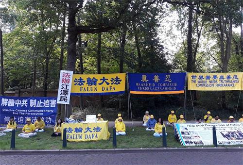 荷兰法轮功学员中使馆前抗议