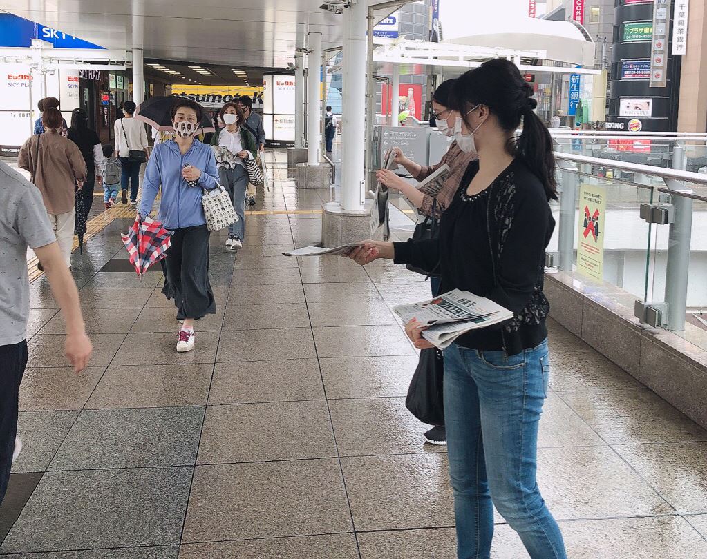 ![]() 图1:法轮功学员在千叶车站前派发法轮功真相资料 |