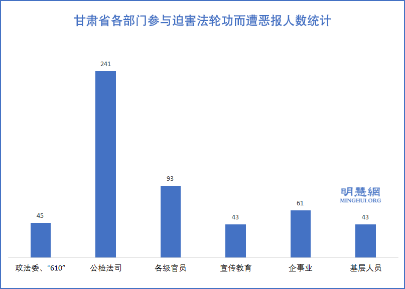 图2:甘肃省各部门参与迫害法轮功而遭恶报人数统计