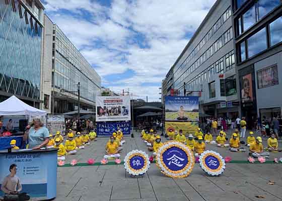 德国中部法轮功学员7月25日在法兰克福市中心举办了反迫害纪念活动,揭露中共对法轮功的残酷迫害,同时向民众展示法轮大法的美好。