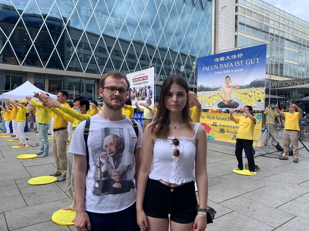 ![]() 图2:两个德国年轻人安吉莉卡和博得甘·安吉莉卡说:“人人都应该站起来反对中共对法轮功的残酷镇压。” |