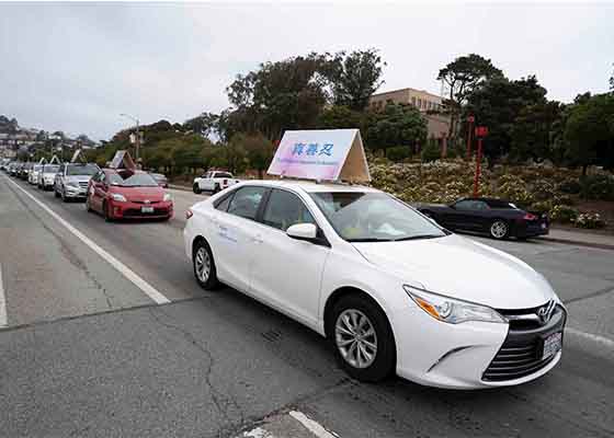 反迫害21周年 旧金山法轮功真相车队传福音(图)