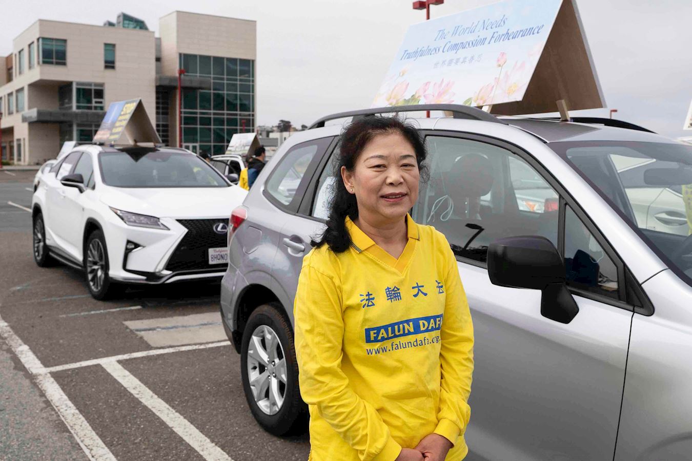 腊梅说,我今天参加汽车游行,就是要求中共停止迫害,释放所有被关押的法轮功学员。中共是真正的邪教,我希望中国人能觉醒,认清中共的邪恶本质,分清善恶。