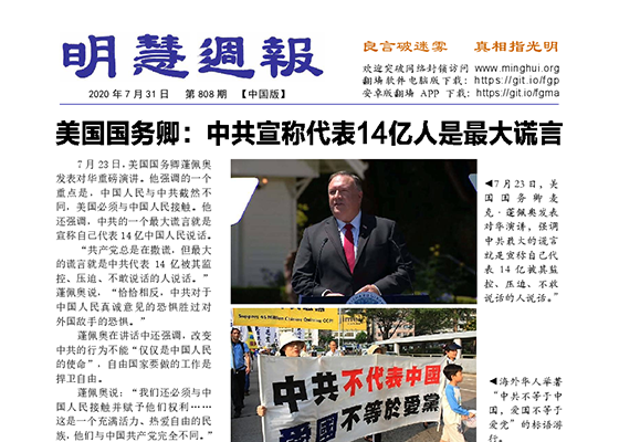 美国国务卿:中共宣称代表14亿人是最大谎言