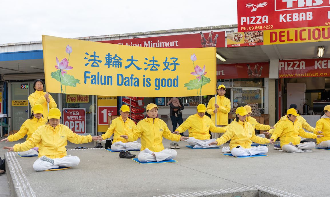 【明慧网二零二零年七月五日】(明慧记者亦清新西兰报道)二零二零年七月四日星期六,新西兰奥克兰南区奥塔拉(Otara)的集市上人头攒动,分外热闹。各式蔬果海鲜、小商品以及飘香的美食让人目不暇接。集市的小舞台上,横幅上中英文“法轮大法好”、“停止迫害法轮功”非常醒目,伴随着优美的音乐,法轮功学员们正在向人们展示五套炼功,他们动作舒缓优美,吸引了不少人驻足观看。