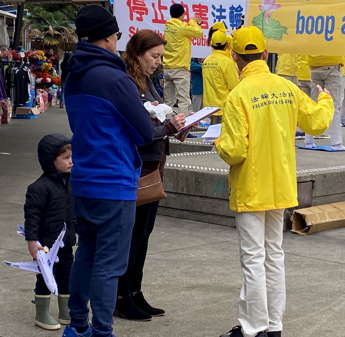 '图3:明白真相的人们签名支持法轮功学员反迫害。'