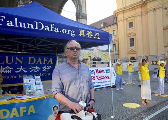 法轮功学员8月8日在慕尼黑举办了信息日,旨在让德国民众了解法轮功,揭露中共对法轮功学员的迫害。奇勒医生表示中共活摘器官是犯罪。