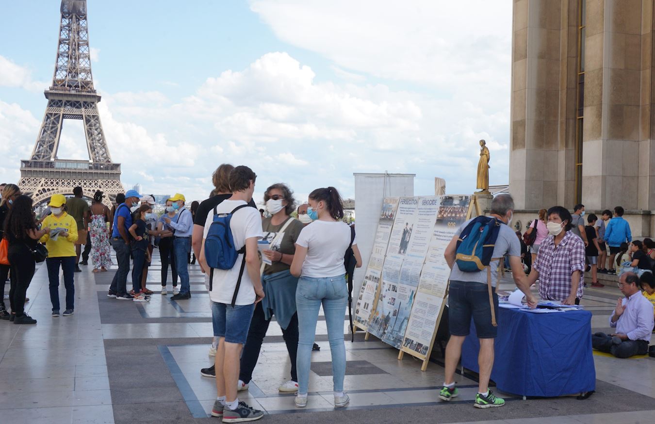 ![]() 图1:法轮功学员在巴黎人权广场举办讲真相活动。 |