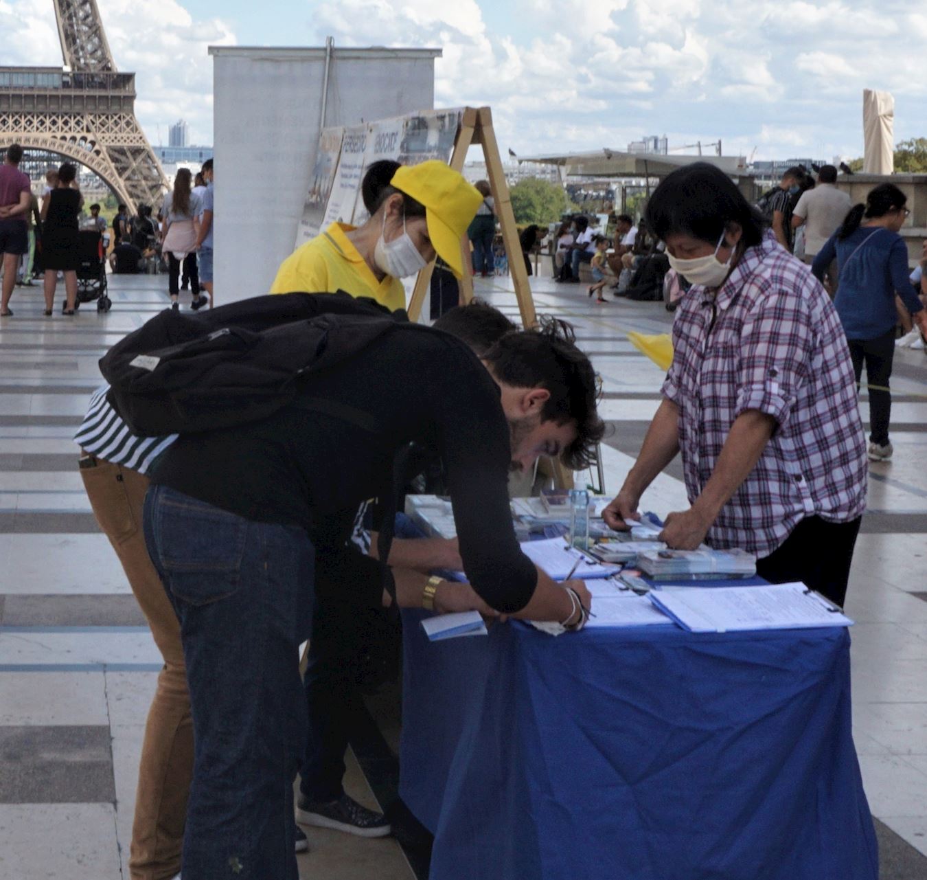 亚历克西斯·德林(Alexis Delin)在巴黎经商,他看过展板后在征签表上签了名。他说:“我虽然还不了解这套功法,但是我知道当一个人已经修炼了十几年的功法,有一天却被镇压了,遭到酷刑甚至器官都被强摘贩卖了,我不能容忍会发生这样的事情。”