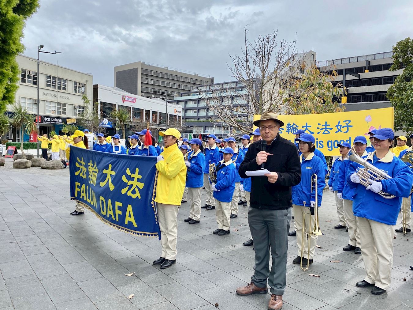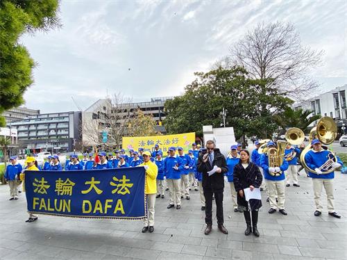 【明慧网二零二零年八月二日】(明慧新西兰记者站报道)二零二零年八月一日星期六中午时分,新西兰奥克兰法轮功学员在新市场(Newmarket)商业中心集会讲真相。天国乐团整齐的服装、振奋人心的乐曲吸引了不少民众驻足观看。明白了真相的人们,震惊于中共对秉持“真、善、忍”信仰的法轮功学员长达二十一年的迫害
