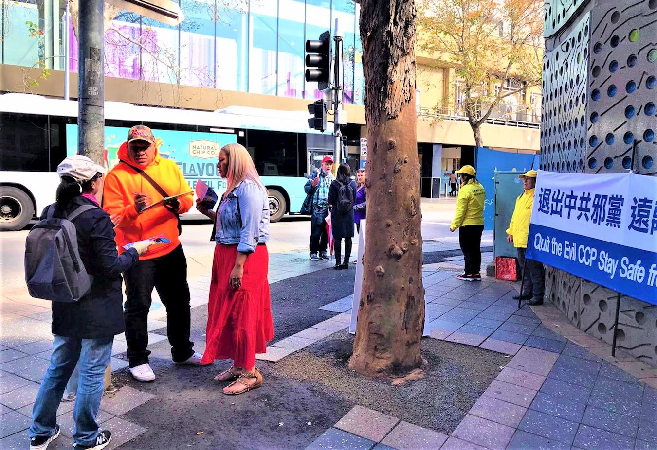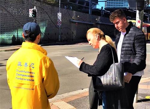 由于受中共病毒疫情的影响,澳大利亚新南威尔洲政府目前的禁令规定室外聚会最多只能20人。即便政商中心游客不如以前那么多,但还是有不少民众在法轮功展位前驻足,了解详情,他们支持法轮功反迫害,并在“拒绝和终结邪恶中国共产党”的请愿书上签名。