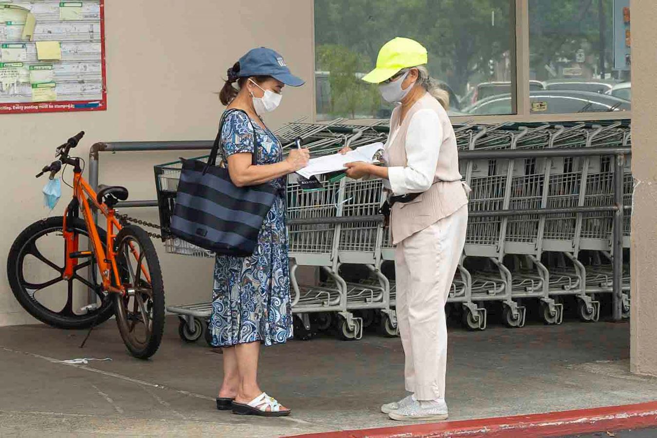 '图11~12:华人超市的顾客在拒绝中共的征签簿上签字'