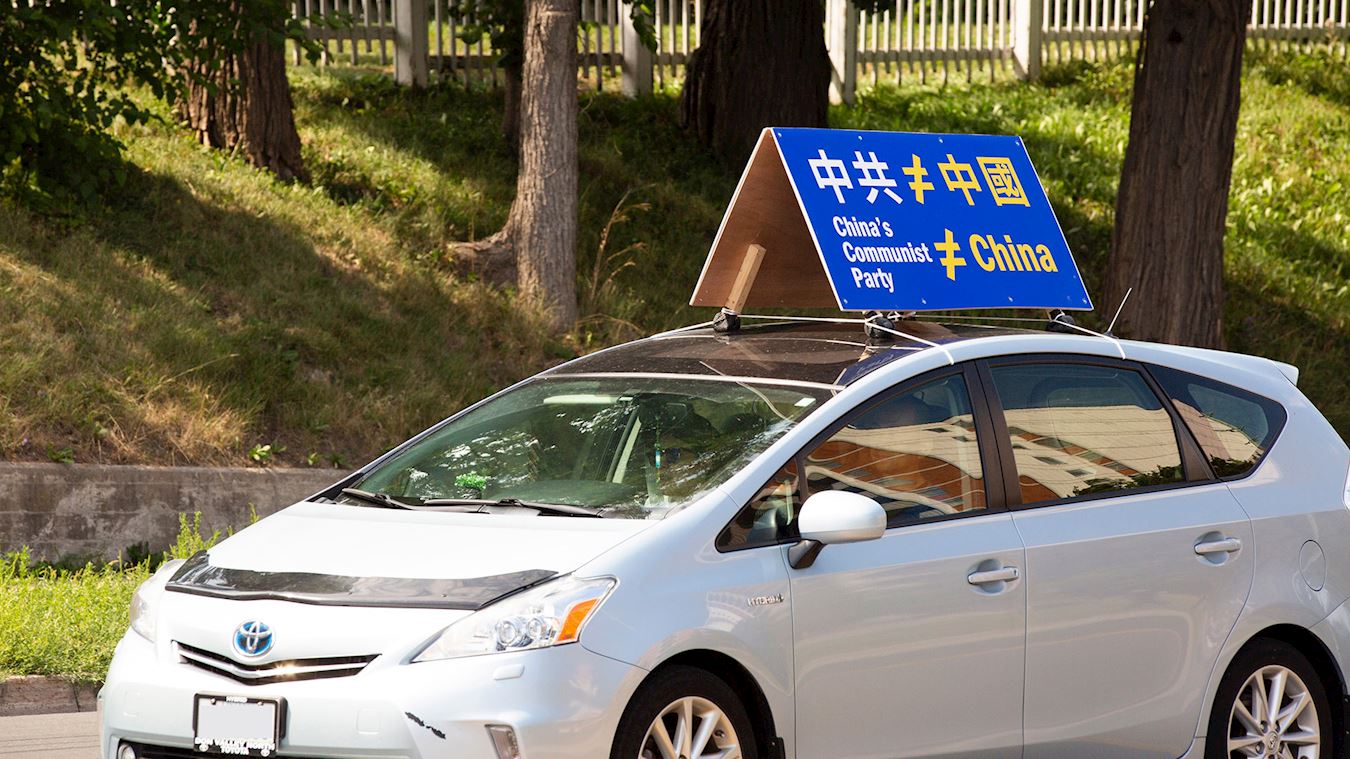 有一辆车牌子是印着伊朗文字的,是伊朗移民穆罕默德‧埃斯梅里(Mohammad Esmaeili)的车,他解释说:“这个图案设计的象征性,源自传统经典——沙里亚与狮子之战。沙里亚代表整个伊朗人民摧毁了象征红龙的邪恶中国共产党。这意味着‘所有伊朗人都团结起来,向中共说‘不’(Say No To CCP)。” 另外,“伊朗”一词以伊朗国旗的颜色设计成绿、白和红三种颜色。