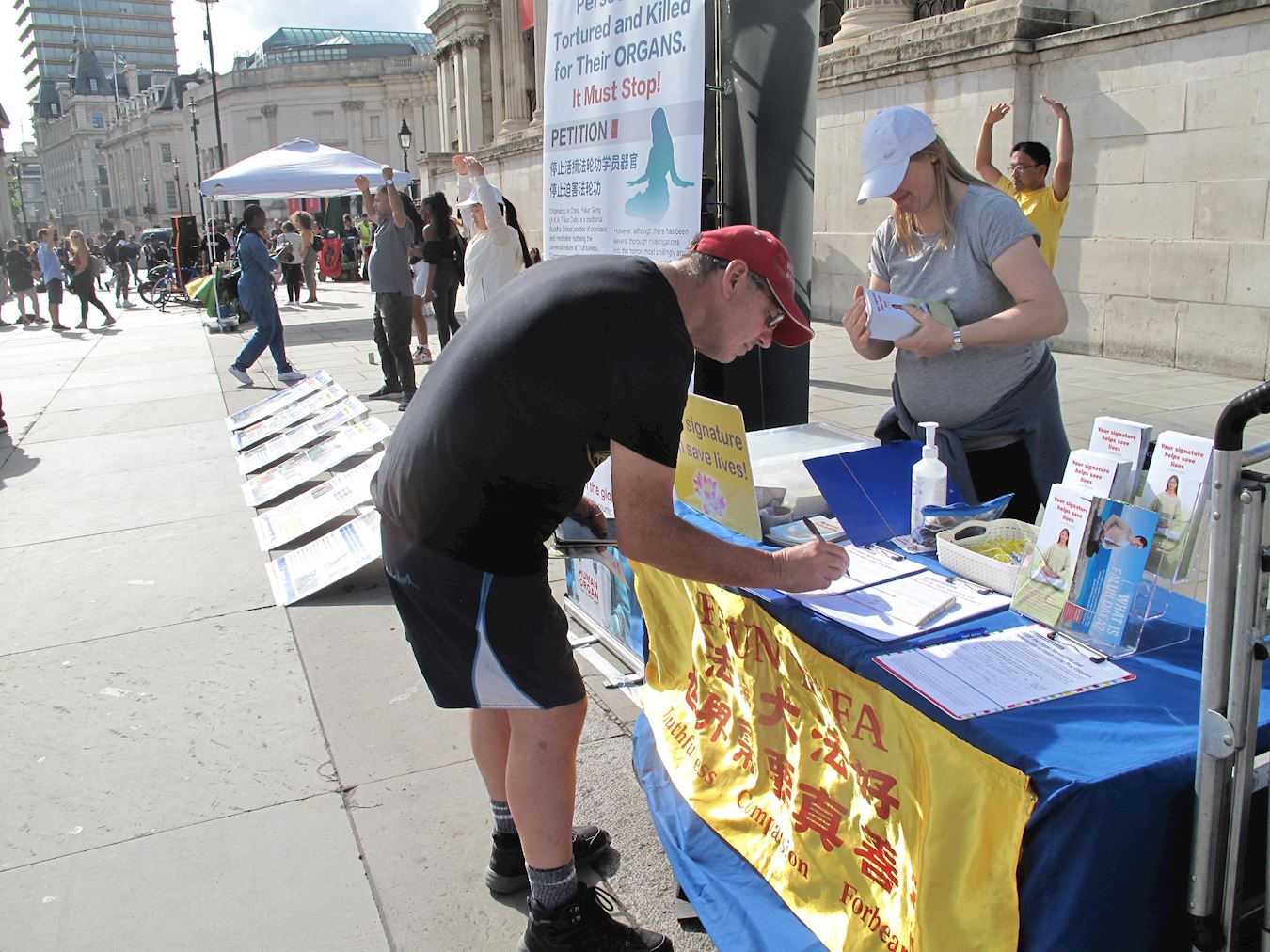 他签字支持制止迫害,他还希望英国政府尽快就制止中共迫害和中共活摘器官罪行发声。