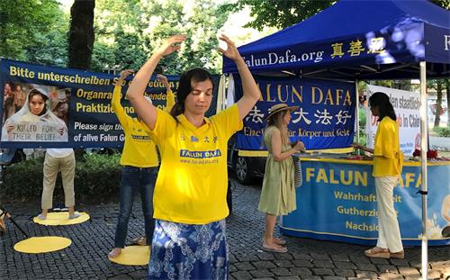![]() 图1:二零二零年八月二十一日,慕尼黑法轮功学员在霍亨索伦广场(Hohenzollern Platz)举办了信息日活动。 |