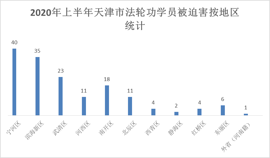 迫害比较集中的区域有:宁河区、滨海新区、武清区。由于中共的信息封锁,更多的迫害案例无法详细统计。