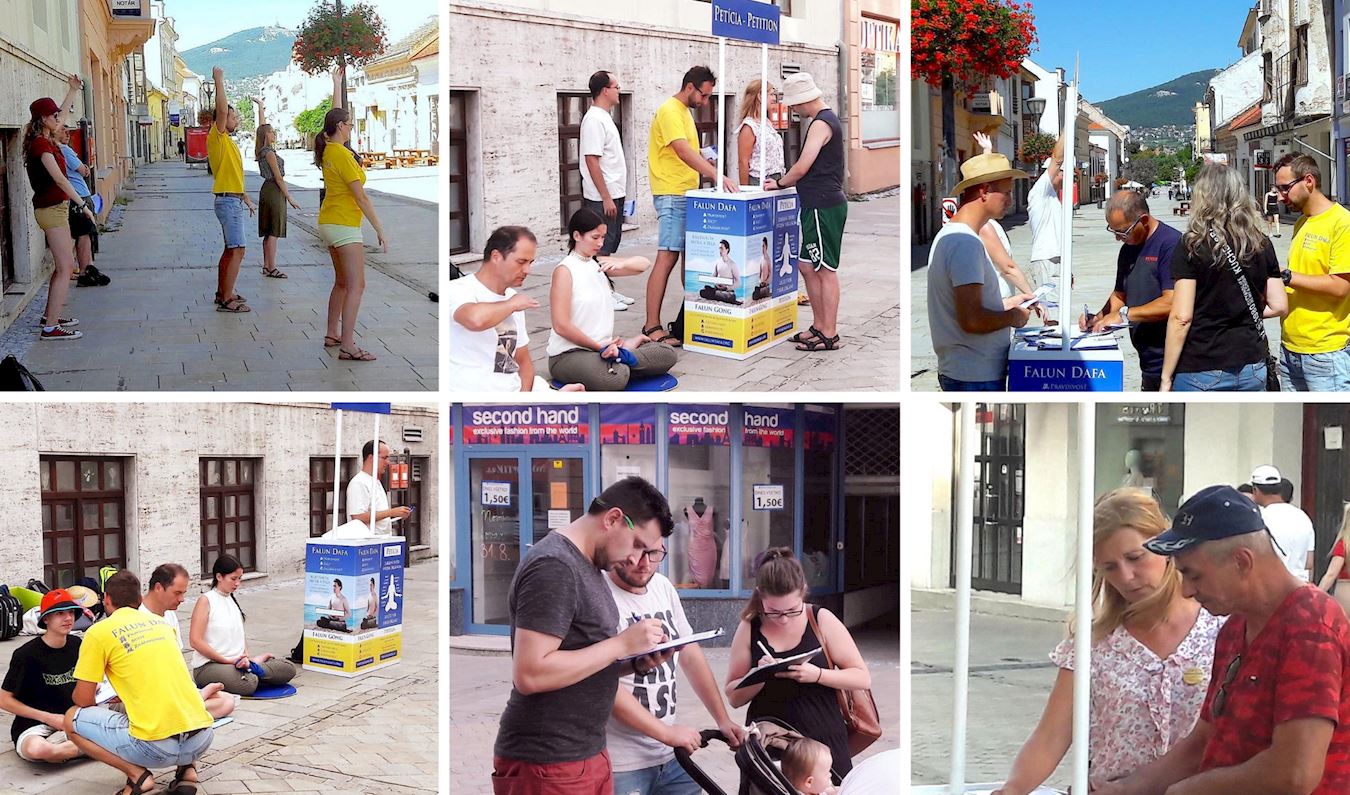 尼特拉(Nitra)是斯洛伐克第四大城市,也是斯洛伐克历史最悠久的城市之一。当天,学员们在市中心步行街斯捷凡尼可娃·德勒亚( Štefánikov Trya)摆好了征签台后,有的展示法轮功功法,有的派发真相传单。