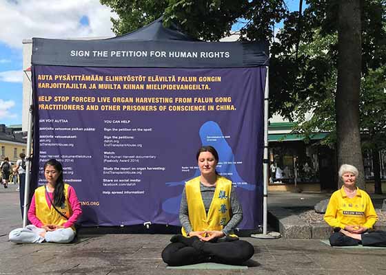 - 芬兰民众:我们能为你们做点什么(图)- 八月一日,法轮功学员在芬兰首都赫尔辛基的购物中心甘比外举办讲真相活动,向过往的民众展示法轮大法的美好,揭露中共对法轮功长达二十一年的残酷迫害。